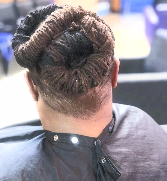 Locs are created using the interlocking method, from root to tip. Loc style not included.